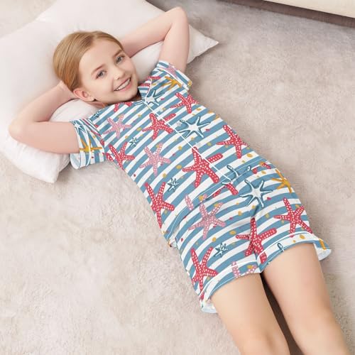 ALAZA Starfish Striped Pajamas Satin Pajama Set Short Sleeve Button Down Sleepwear 7