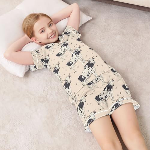 ALAZA Cow Cartoon Stylish Pajamas Satin Pajama Set Short Sleeve Button Down Sleepwear 6