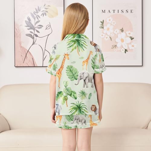 senya Cute African Animals A Satin Summer Pajama Sets Silk Short Sleeve Button Down Sleepwear 3