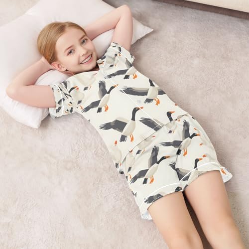 senya Wild Geese Satin Summer Pajama Sets Silk Short Sleeve Button Down Sleepwear 1