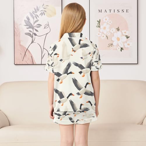 senya Wild Geese Satin Summer Pajama Sets Silk Short Sleeve Button Down Sleepwear 5