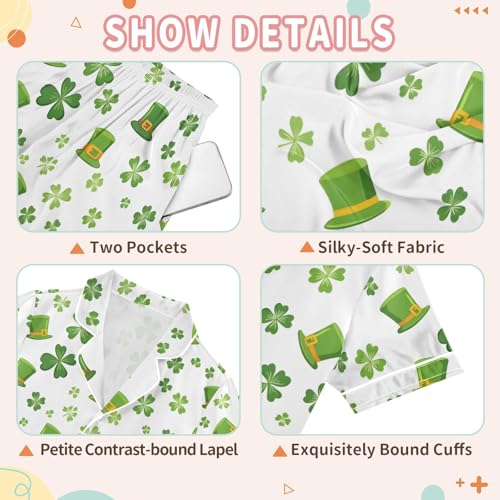 More information about Cute Clover Green Hats Summer Satin Pajama Set, Cute Button-Down Sleepwear Pj Set for Sleep Wears