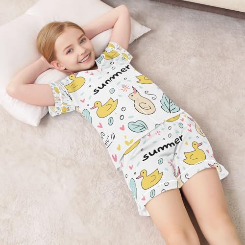 senya Duck Swimming Summer Satin Summer Pajama Sets Silk Short Sleeve Button Down Sleepwear 2