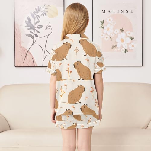 HOT ! senya Capybara Autumn Satin Summer Pajama Sets Silk Short Sleeve Button Down Sleepwear