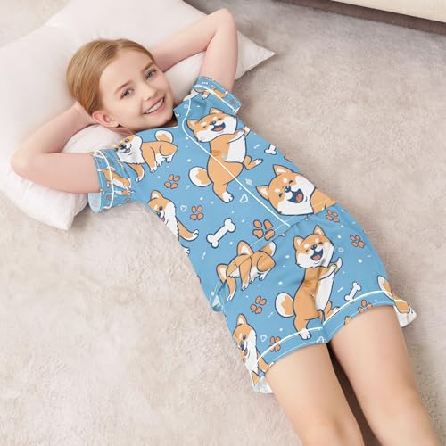 senya Cute Paws and Bones Satin Summer Pajama Sets Silk Short Sleeve Button Down Sleepwear 5