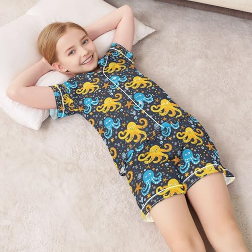 senya Starfish Octopus 1 Satin Summer Pajama Sets Silk Short Sleeve Button Down Sleepwear 4