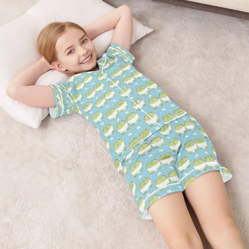 senya Mini Frog Satin Summer Pajama Sets Silk Short Sleeve Button Down Sleepwear 6