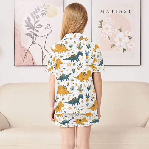 senya Garden Dinosaur Satin Summer Pajama Sets Silk Short Sleeve Button Down Sleepwear 6