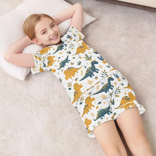 senya Garden Dinosaur Satin Summer Pajama Sets Silk Short Sleeve Button Down Sleepwear 1