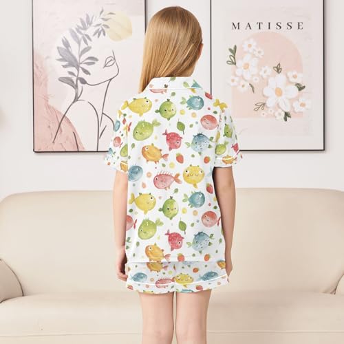 senya Puffer Fish Satin Summer Pajama Sets Silk Short Sleeve Button Down Sleepwear 1
