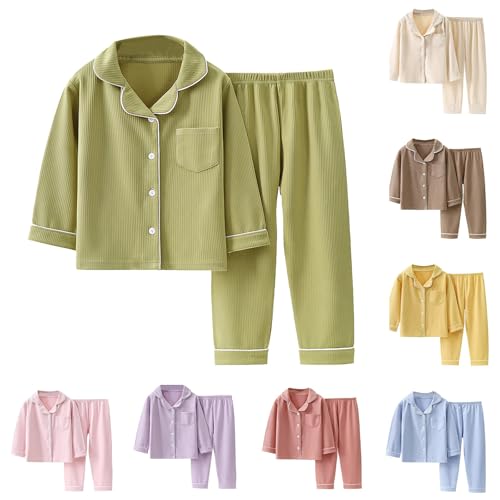 HOT ! Cotton 𝐏a𝐣ama Set for Girls Flannel Button Down 𝐏ajamas Long Sleeve 𝐒leepwear for Kids Soft (Brown, 11-12)