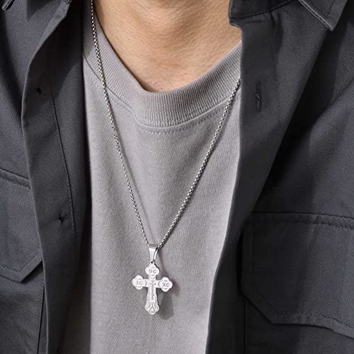 HOT ! Men's Orthodox Cross Pendant Necklace - Trendy Religious Cross Chain,Hypoallergenic Waterproof Stainless Steel Christian Long Necklaces,Non Tarnish Byzantine Cross Symbol Pendants Necklace for Him