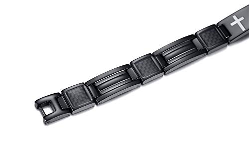 MEALGUET Stainless Steel Religous Scripture Quote Faith Christian Bible Verse Inspirational Cross Carbon Fiber Link Bracelet for Men 7