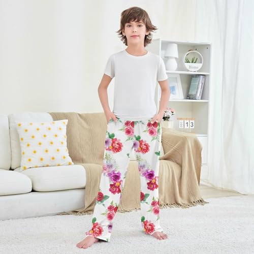More information about J JOYSAY Peony Blossom Bouquet White Pajamas Pants Soft Long Pajama Bottoms Lounge Sleep Pants Size S-XL