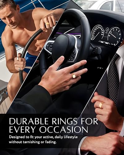 • COMFORT & VERSATILITY: Our mens signet ring is available in sizes 6 to 12, ensuring a perfect fit for any finger. Whether you prefer it as a pinky ring men, mens thumb ring, or signet ring, it delivers a bold look without feeling bulky. Designed for all-day wear, the smooth, gold plated edges provide a comfortable fit, so you can rock your gold signet rings for men with confidence from morning to night.