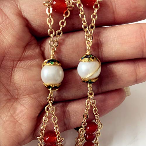 • elegantmedical handmade Ladder to Heaven Red Agate & Real AAA10mm Pearl Catholic Rosary crucifix Necklace