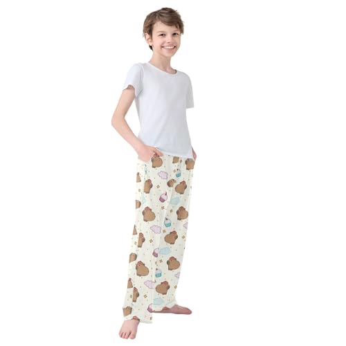 HOT ! Adorable Capybara with Cupcake Cute Pajama Pants, Soft Sleepwear Lounge Pants Pajama Pj Bottoms for 6-14 Years