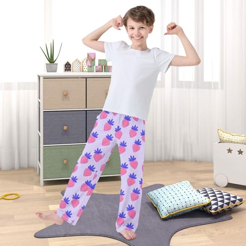Strawberry Purple Cute Cartoon Pattern Cute Pajama Pants, Soft Sleepwear Lounge Pants Pajama Pj Bottoms for 6-14 Years 1