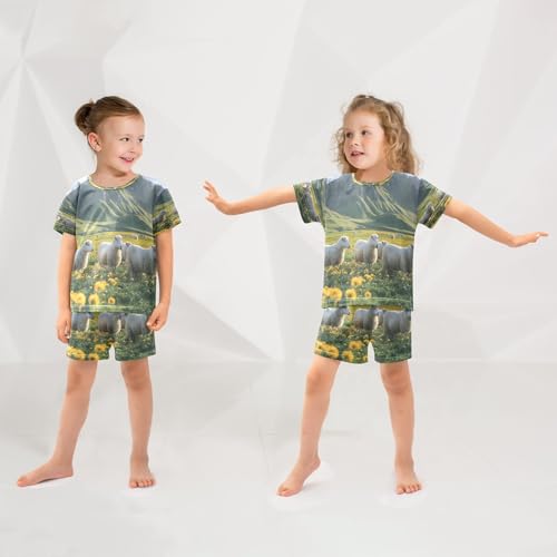 ALAZA Sheep Field Flower Blossom Mountain Pajamas Set Short Sleeve Cotton Sleepwear Summer Pjs 2 Piece 5-14Y 5
