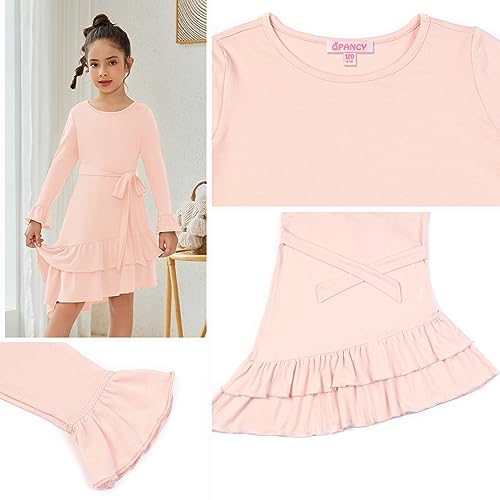 QPANCY Girls Long Sleeve Dresses Round Neck Casual Ruffle Swing Dress with Belt 5