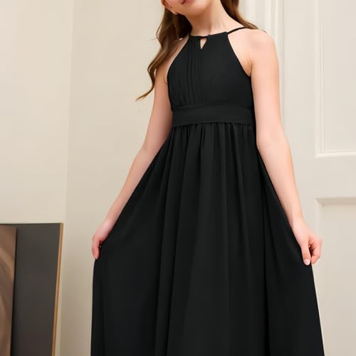 • STYLE DESIGH: Junior bridesmaid dresses for teen girls features with sleeveless, ruffled, crew neck, A-line floor-length, back zipper closure. Your girls will love this girls formal dress beautiful dress