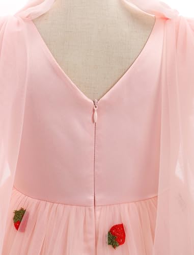 • Select Size: Kids girls tulle strawberry birthday party dresses sheer mesh long sleeve fall dress cherry heart princess pageant dress christening gown, fit for kids toddler baby girls in 3-4t, 4-5t, 5-6t, 6-7t from baby to teens girls. 3 colors in pink strawberry, white cherry, pink heart. Long mesh straps bowknot ruffle tulle dress, elegant satin V-neck V-backless dress, very youthful and beautiful. Great as twin girls and little big sisters family matching dress clothes