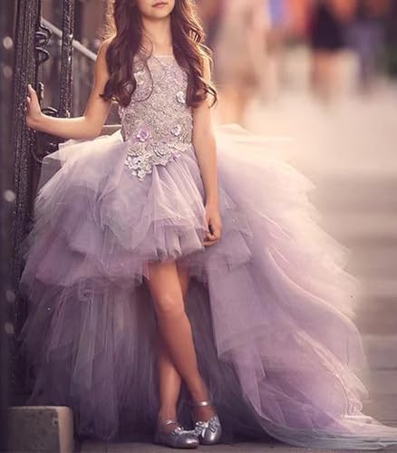 Tulle Flower Girl Dresses High Low Girls Pageant Dress Lace Applique Princess Ball Gowns for Girls 5