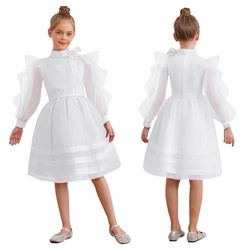 Kid Girl Long Sleeve Midi Flower Girl Dress A-line Princess Pageant Gown Wedding Party Dress 6