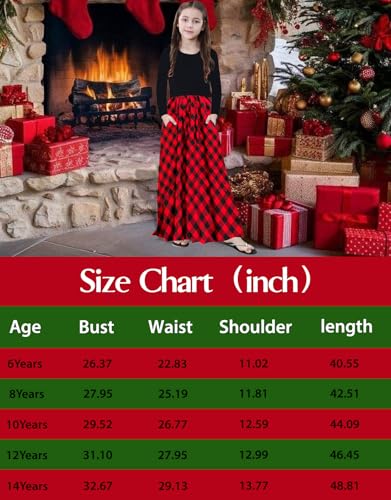 • HIGHT QUALITY SKIN-FRIENDLY FABRIC ---polyester girl maxi dress, long sleeve dresses for girls, elastic, breathable, lightweight, super comfy soft and comfortable to wear, crewneck, empire waist dress, long length buffalo plaid dress with pockets, perfect stitching without pilling, fading