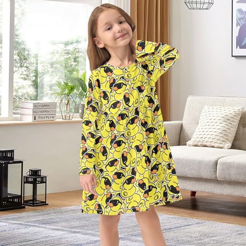 Girls Rubber Duck Dress Long Sleeve Kids Casual Crewneck A-Line Fall Dresses Midi Clothes 3-11 Years 4