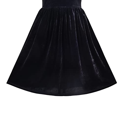 Sunny Fashion Girls Dress Black Velvet Short Sleeve Pearl Vintage Party Casual 7