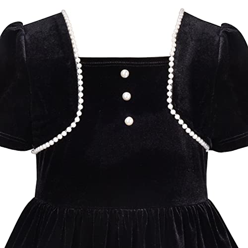 Sunny Fashion Girls Dress Black Velvet Short Sleeve Pearl Vintage Party Casual 6