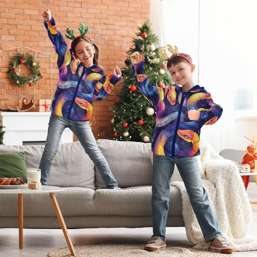 Watercolor Cute Snake Toddler Fleece Jacket Girl Boys Hooded Fleece Jacket Coat Warm Outwear Zip-up 3-10T 3