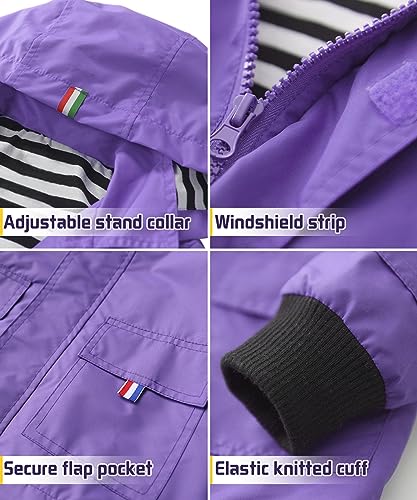 Boys Girls Lightweight Rain Jacket Hooded Cotton Lined Raincoat Waterproof Windbreaker Outwear 6