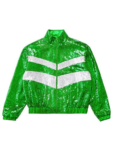 Sequin Jacket for Girls Kids Boys Glitter Sparkle Bomber Jacket Varsity Zipper Coat Birthday Party Outwear 6
