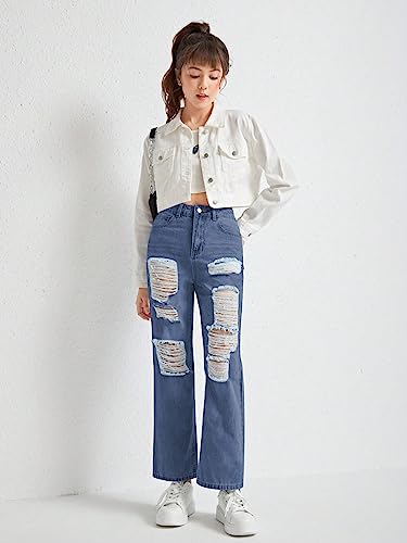 WDIRARA Girl's Graphic Butterfly Print Ripped Jeans Straight Leg Distressed Jean Pants 4