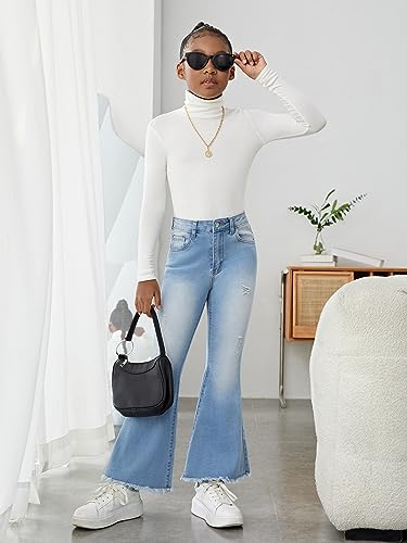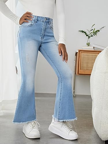 WDIRARA Girl's Ombre Raw Hem Flare Leg Jeans High Waist Pocket Casual Denim Pants 6
