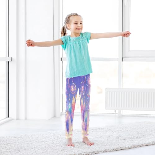 Fantasy Dream Catcher Colorful Feather Girls Casual Leggings for Kids Printed Long Pant Bottoms Stretch and Soft 4