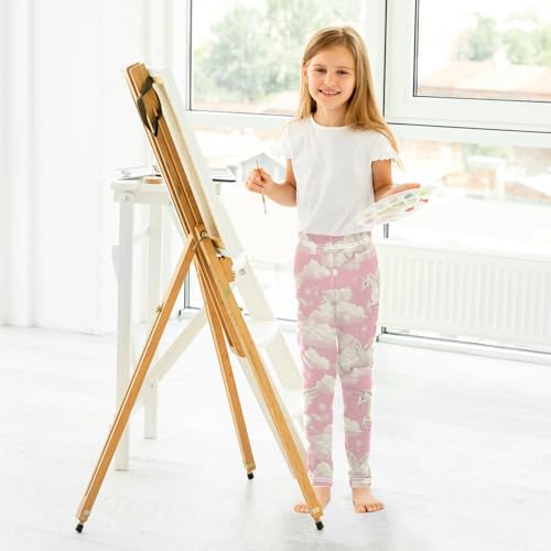 Winged Unicorns Girls' Leggings Toddler Doodles Clouds Kids Yoga Pants Dance Active Tights 4T 4