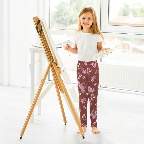 Bright Floral Girls Leggings,Workout Leggings for Girls Toddler Athletic Legging Size for 3-10T 5