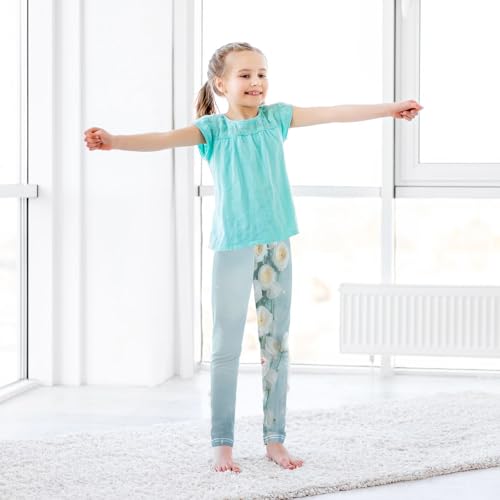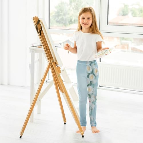 Bolaz Toddler Girls Leggings Printed Yoga Pants Leggings White Rose for Kids 7