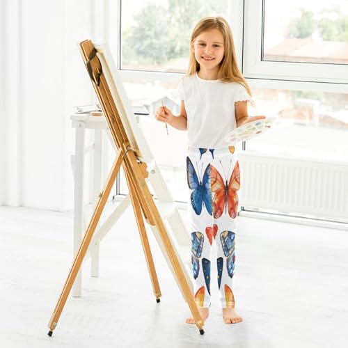 Bolaz Toddler Girls Leggings Printed Yoga Pants Leggings Watercolor Orange Blue Butterflies for Kids 7