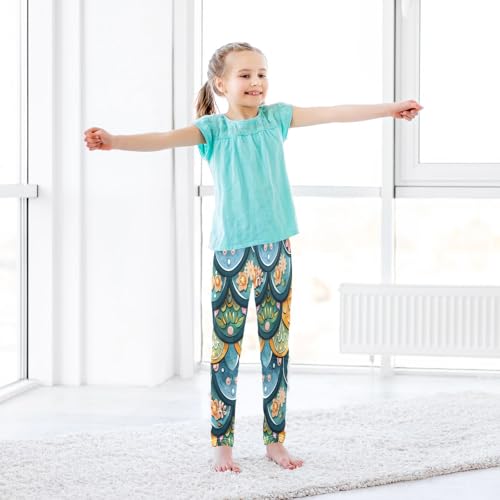 Toddler Girls Leggings Printed Yoga Pants Leggings Fantasy Mermaid Scale Pattern with Many Flowers for Kids 4