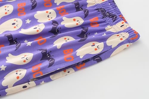 • Pull on closure. The shot sleeve pjs tee shirt has a fun black pumpkin printed graphic design at front and crew neckline. Great Halloween ghosts pattern jammies set for your girls and tagless shirt label design keep them cozy while lounging and napping.