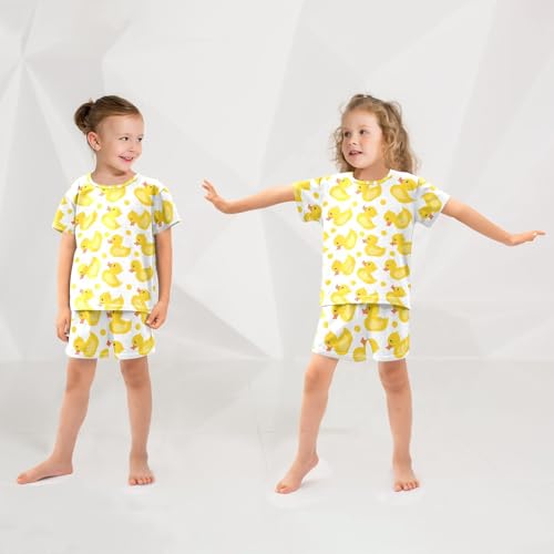Pajama Short Sets Cartoon Rubber Ducks Pattern Soft Cotton Summer Sleepwear 2 Piece PJS Size 5-14T 6