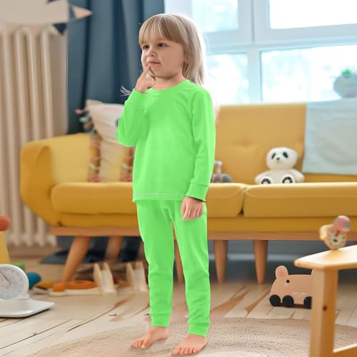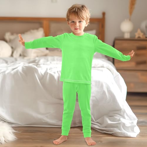 Fluorescent Green Long Sleeve Pajamas Set Sleepwear Jammies 2pcs Set Pjs Fluorescent Green 6