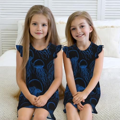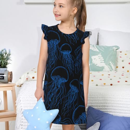 Augenstern Flutter Sleeve Nightgown Pajama Gown Underwater Jellyfish Pattern Easy Pull-On Sleepwear Nightdress 3