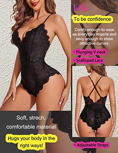 Avidlove Women One Piece Lingerie Deep V Teddy Sexy Lace Bodysuit Snap Crotch Babydoll 5