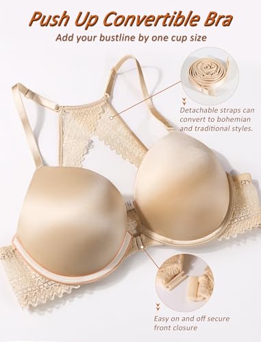 DotVol Women's Front Closure Push Up Convertible Bohemian Back Underwire Everyday Bra 6