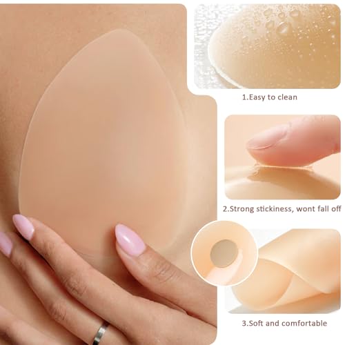 • Comfortable Material:Made from high-quality silicone, these breast pads are Hypoallergenic, soft and skin-friendly. Ultra-Thin tapered edges blend seamlessly into skin. They are comfortable for extended wear without causing skin irritation.